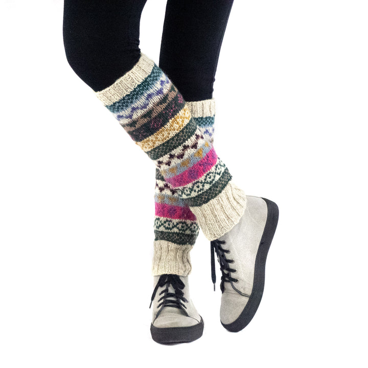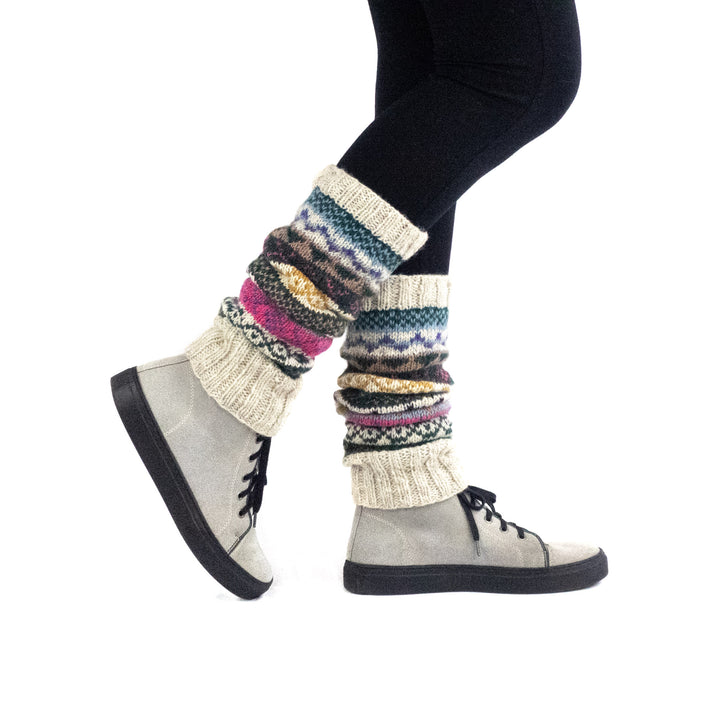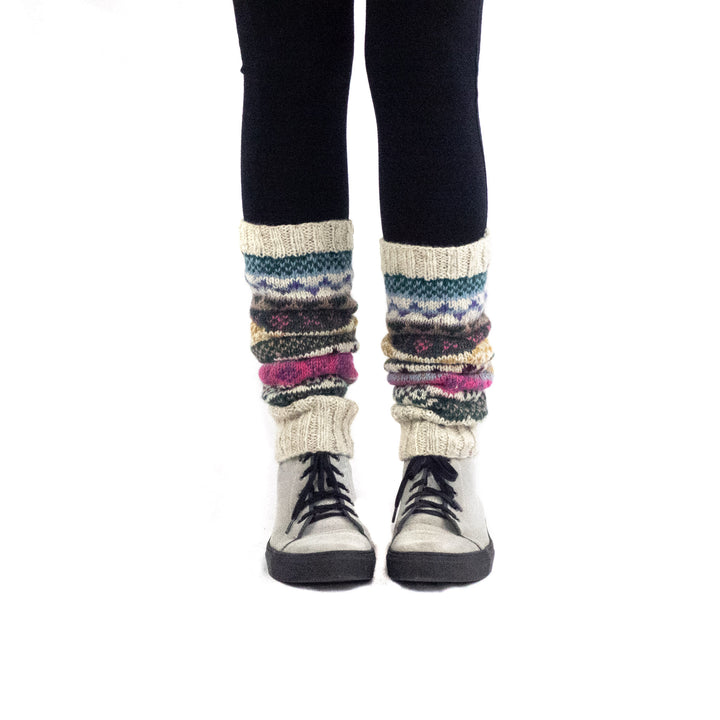 Our ethically made woolen leg warmers are hand knitted in Nepal using pure sheep wool imported from New Zealand. Manufactured by local Tibetan, Nepalese and Newar women with the main mission to empower them.